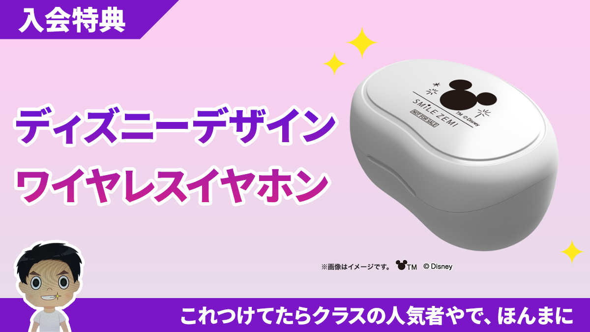 ディズニーのワイヤレスイヤホンが全員にもらえる期間中、スマイルゼミ中学生コースに入会すると全員にもらえるディズニーグッズをご紹介。