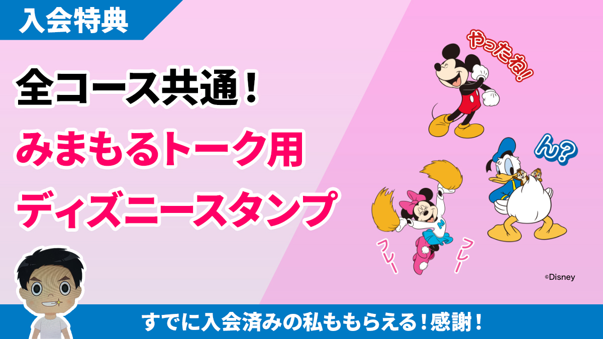 全コース共通の入会特典!ディズニーのみまもるトーク用スタンプ!!