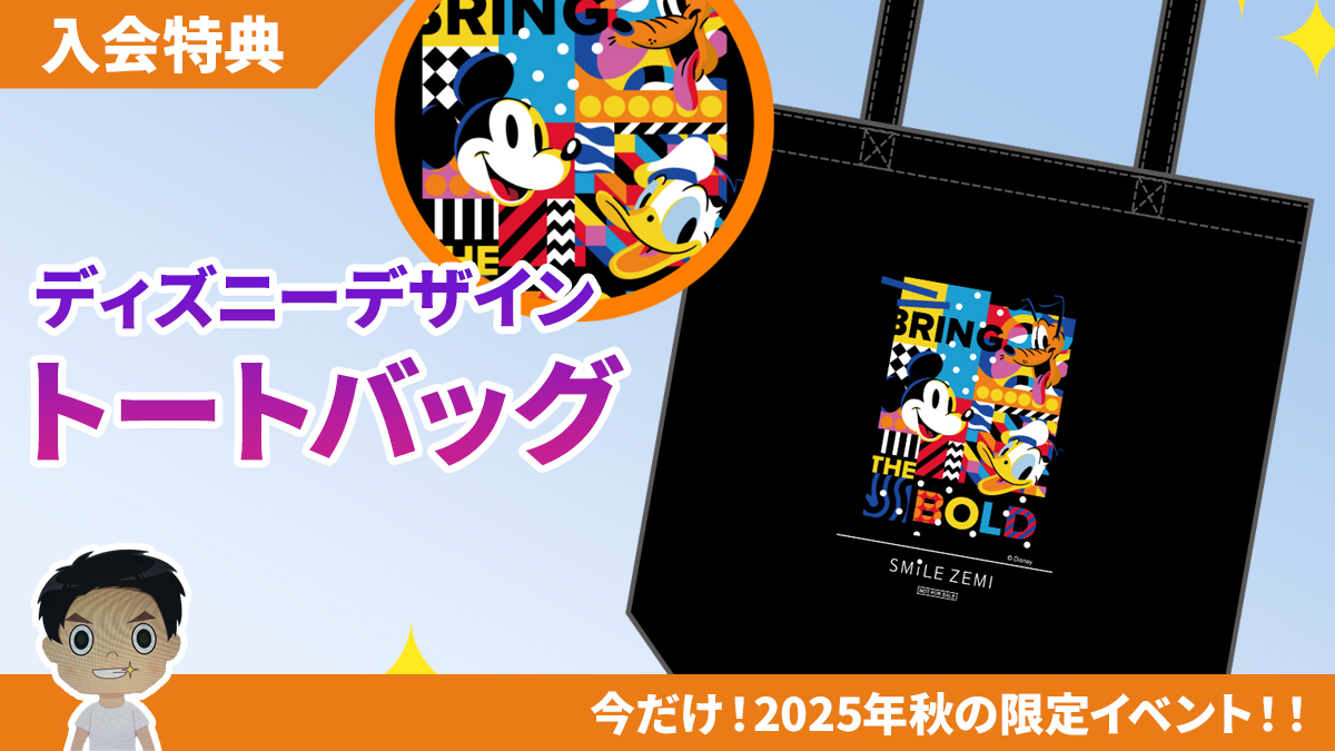 スマイルゼミに入会すると全員もらえる、ディズニートートこちらはスマイルゼミに入会するともらえるお得な特典になります。