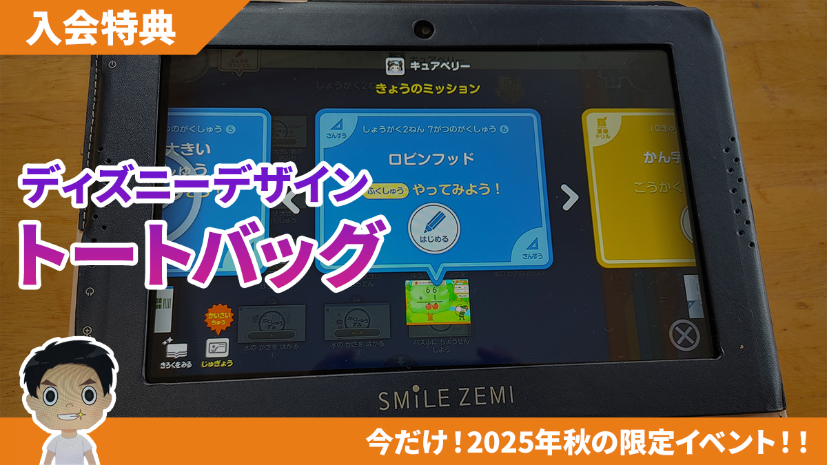 スマイルゼミオリジナル、ディズニデザインのトートバックが必ず全員にもらえます。